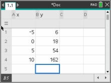 The table at the right shows values from an exponential function.