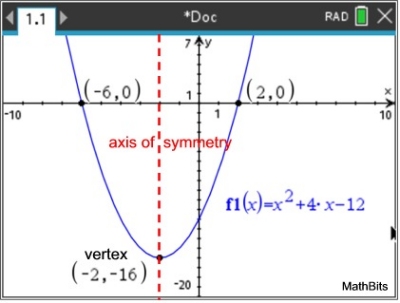 Remember that the y-intercept is also the c-value from the equation. f (x) = x2 + 4x - 12.