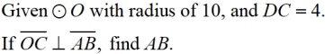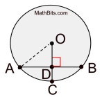 • Since the radius is perpendicular to the chord, it bisects the chord. Thus AB = 16. |