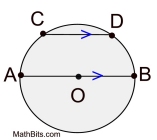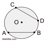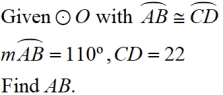 • Since the arcs are congruent, the chords that intercept these arcs are also congruent. Thus, we know that AB = CD.