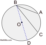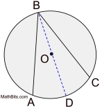 In the diagram at the right, ∠ABC is an inscribed angle with an intercepted minor arc from A to C.