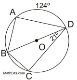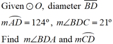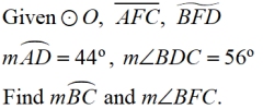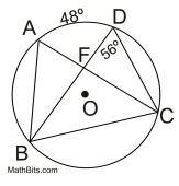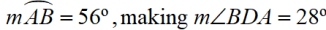• If m∠BDC = 56º, then the minor arc from B to C has a measure of 112º. Since ∠BAC also intercepts this arc, m∠BAC = 56º.