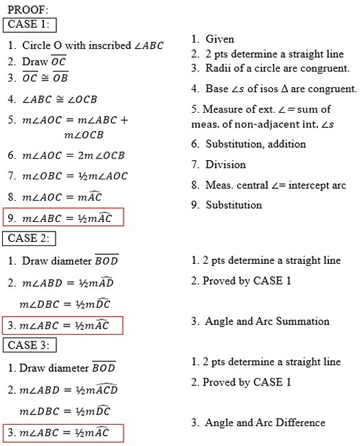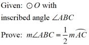 PROOF of the theorem on measuring an inscribed angle: