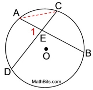 In the diagram at the right, ∠AED is an angle formed by two intersecting chords in the circle. Notice that the intercepted arcs belong to the set of vertical angles.