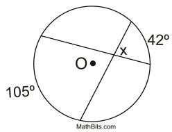 • Formula needed: the angle = ½ the sum of the intercepted arcs (and work in reverse).