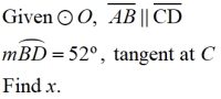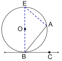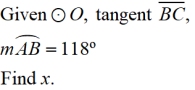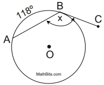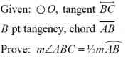 In the diagram at the right, ∠ABC is a tangent-chord angle with an intercepted minor arc from A to B.