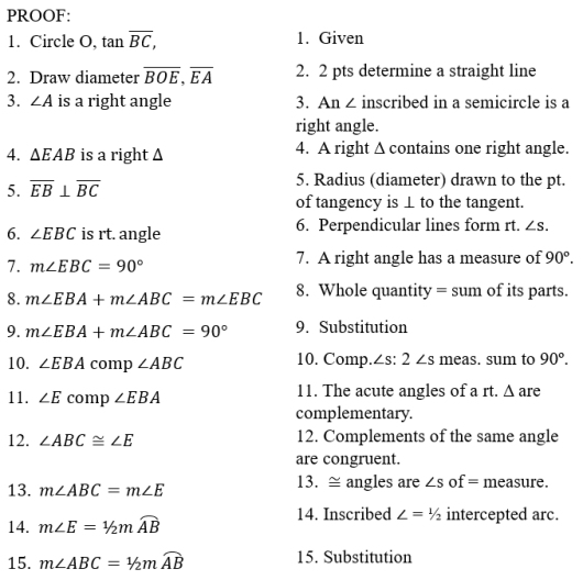 NOTE: Yes, if we extended the tangent line to the left of point B, we would form another tangent-chord (obtuse) angle which would measure ½ the