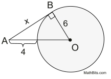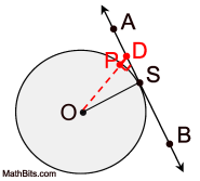• In this diagram, the radius is perpendicular to the tangent at the point of tangency, forming the right triangle shown.