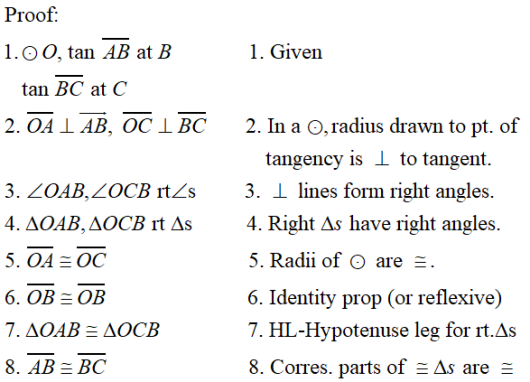 Tangent segments to a circle from the same external point are congruent.