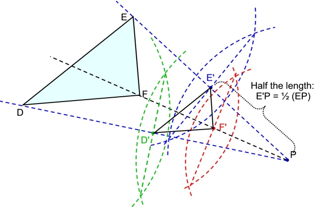 Construct: the dilation of ΔABC by a scale factor of 2 centered at point P