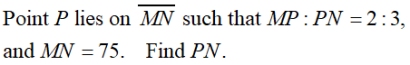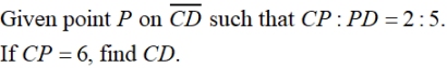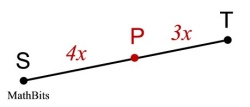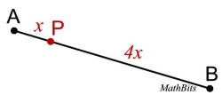 • If P is the partition point, it will be located 3 of the 5 equal sections away from A and 2 of the 5 equal sections away from B. Point P is closer to point B.