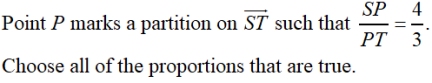 Partition means to separate or to divide. A line segment can be partitioned into smaller segments which are compared as ratios. |