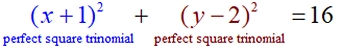 two perfect square trinomials - one associated with each variable.