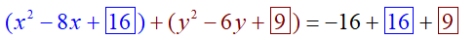 x2- 8x + y2 - 6y = -16 |