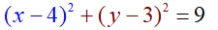 | This circle has a center at (4,3) and a radius of 3. |