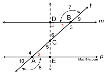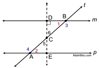 Given: lines m, p both cut by transversal t