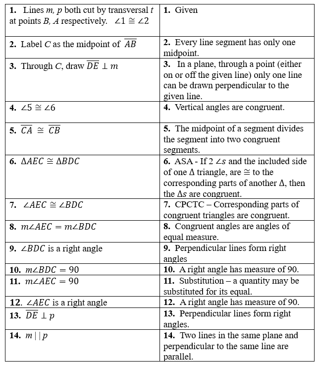 All four angle types will be discussed in connection to one basic proof to prove lines parallel starting with congruent alternate interior angles.