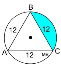 In the circle shown at the right, ΔABC is an equilateral triangle. Find the area of the shaded (colored) region using the information given.