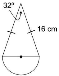The shape shown at the right is an isosceles triangle with a semicircle at its base.