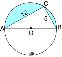Given circle O with AC = 12 and CB = 5. Find the area of the shaded (colored) region. Express answer in terms of π.