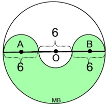 | 2. Given circle O, with semicircles O, A and B. Find the area of the shaded (colored) region in terms of π.