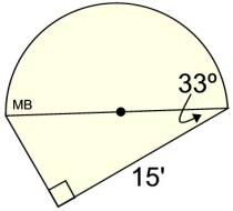= ½ (15)(17.885) sin(33º) = 73.057 sq. ft.