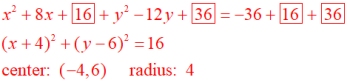 x2 + y2 + 8x - 12y + 36 = 0,