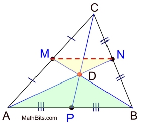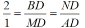 (AD : DN and BD : DM) to be equivalent to 2 : 1.