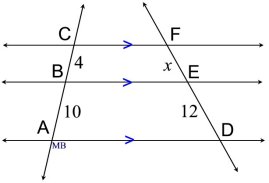 Notice how, when the transversals intersect, the problem becomes a triangle. |
