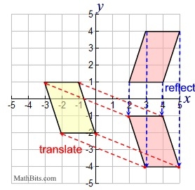 "a translation of (x, y) → (x + 1, y + 5) after "a reflection in the line y = x".