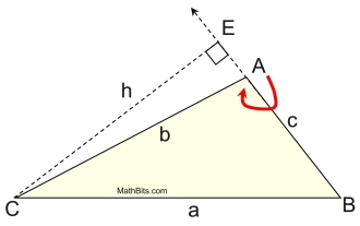 Draw the altitude from C to the line containing the opposite side. Δ CAE is a right triangle, but unfortunately it does not contain ∠ A that we need for our formula. |
