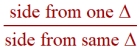 The equality of the corresponding ratios in similar triangles, of different sizes,