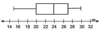 The data set 15, 18, 19, 20, 21, 21, 21, 22, 24, 26, 27, 27, 28, 29, 30 represents the number of hours students from Mr. Allen's math class spent on their cell phones during a 5-day school week.